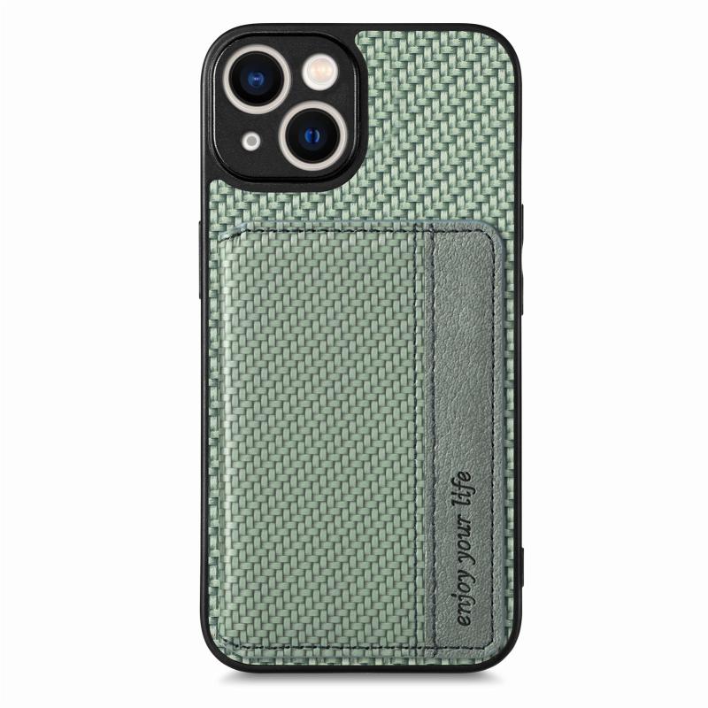 For iPhone 14 Carbon Fiber Magnetic Card Bag Phone Case(Green)