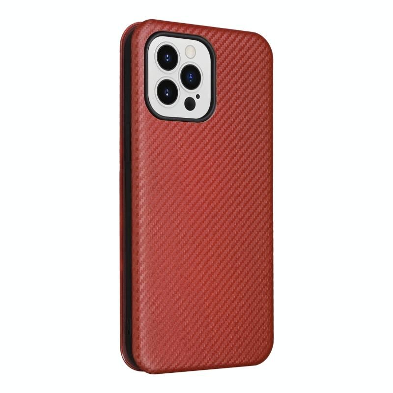 For iPhone 14 Carbon Fiber Texture Flip Leather Phone Case (Brown)