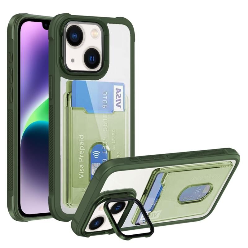 For iPhone 14 Card Bag Holder Acrylic Hybrid TPU Phone Case(Green)