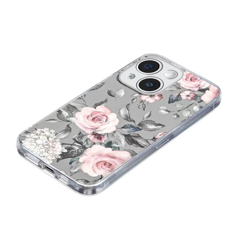 For iPhone 14 Colorful Painting Pattern TPU Phone Case(Flowers On Grey)