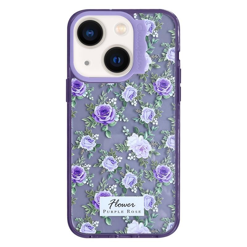 For iPhone 14 Colorful Wave Circle Creative Pattern Phone Case(Purple Flower)