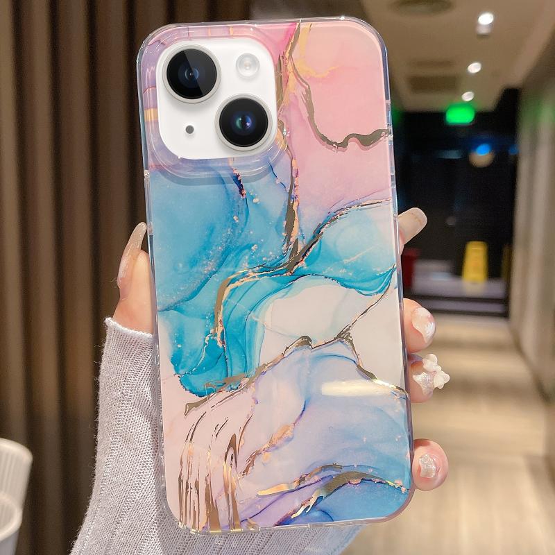 Θήκη τηλεφώνου με γυαλιστερό μαρμάρινο σχέδιο για iPhone 14 (Ροζ Χρυσό)