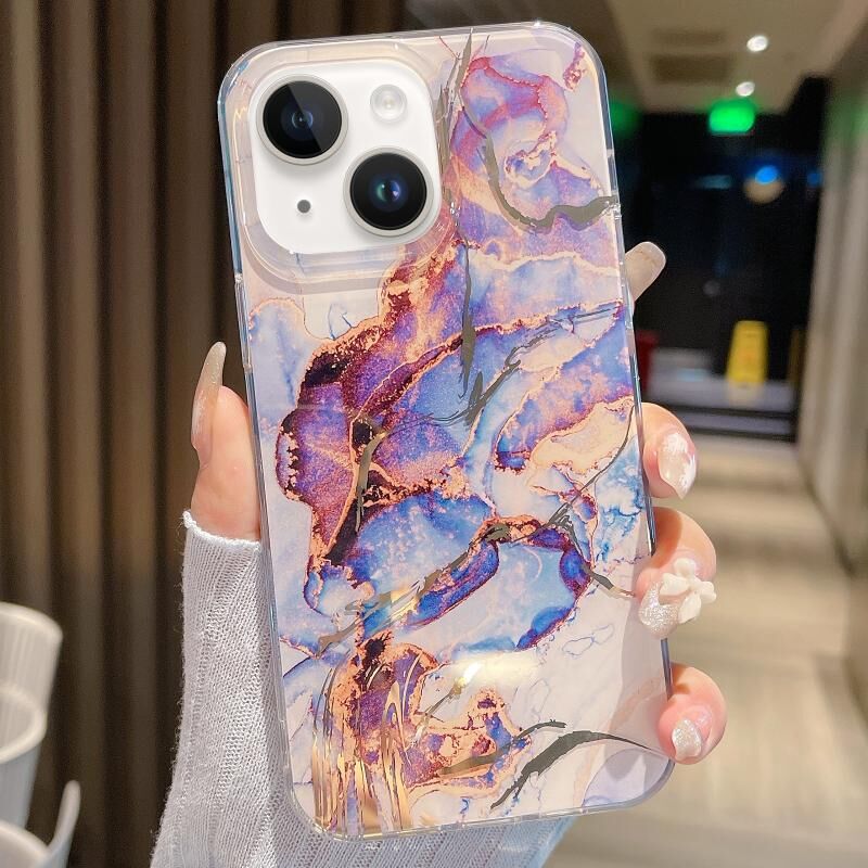 Θήκη τηλεφώνου με γυαλιστερό μαρμάρινο σχέδιο για iPhone 14 (Ροζ Χρυσό)