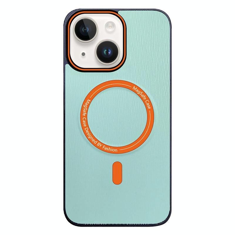 Θήκη τηλεφώνου MagSafe με απομίμηση ξύλου σε αντίθετα χρώματα για iPhone 14 (Ανοιχτό Κυανό)