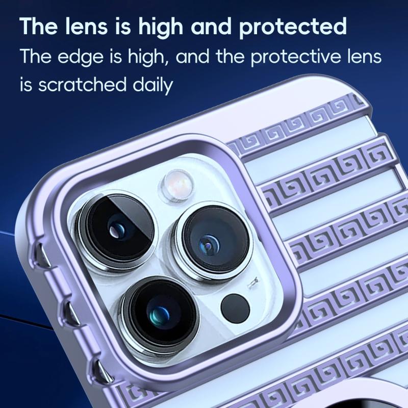 For iPhone 14 Cooling Ladder Electroplated Hollow Phone Case(Purple)