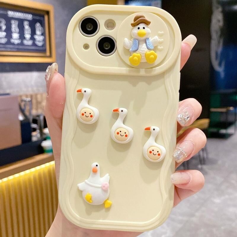 Θήκη τηλεφώνου για iPhone 14 με δημιουργικό 3D σχέδιο πάπιας, με ολισθηρό παράθυρο και πλήρη κάλυψη (Μαύρο)