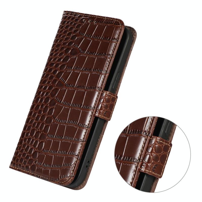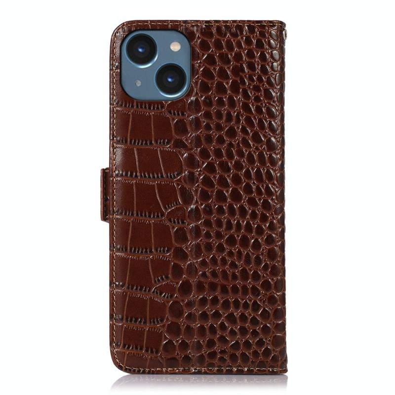 For iPhone 14 Crocodile Top Layer Cowhide Leather Phone Case (Brown)