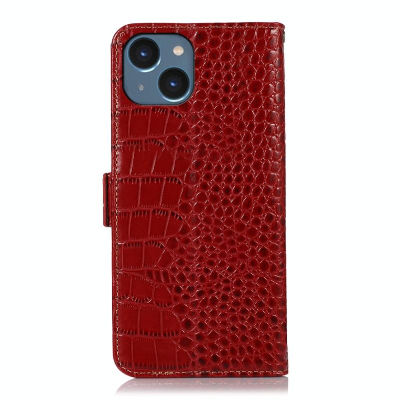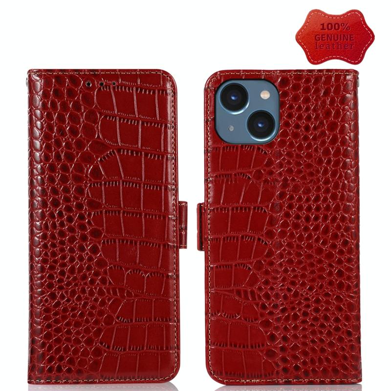 For iPhone 14 Crocodile Top Layer Cowhide Leather Phone Case (Red)