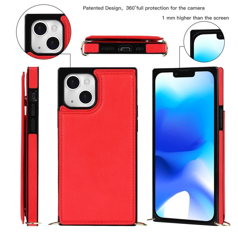 For iPhone 14 Cross-body Square Dual-Buckle Card Flip Wallet Phone Case(Red)