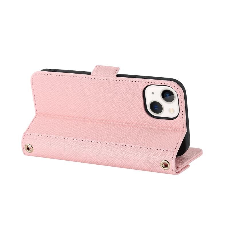 Θήκη τηλεφώνου από δέρμα με υφή σταυρού για iPhone 14 (Μαύρο)