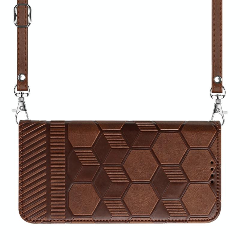 For iPhone 14 Crossbody Football Texture Magnetic PU Phone Case (Brown)
