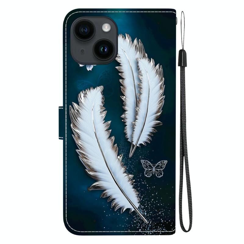 Θήκη τηλεφώνου από δέρμα με χρωματιστή σχεδίαση κρυστάλλινης υφής για iPhone 14 (Λευκά φτερά πεταλούδας)