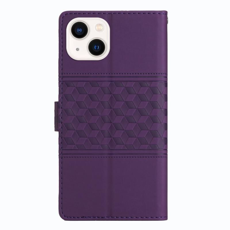 Θήκη τηλεφώνου από δέρμα με ανάγλυφο διαμαντιού για iPhone 14 με κορδόνι (Καφέ)