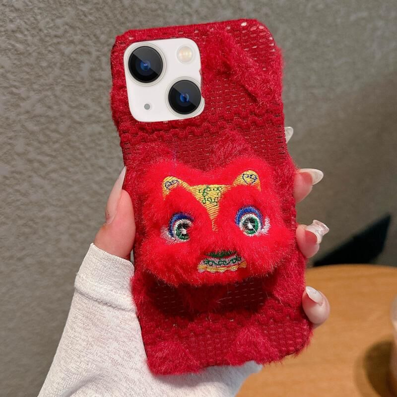 Θήκη τηλεφώνου για iPhone 14, βελούδινη κούκλα, υβριδική PU/PC (Λευκό)