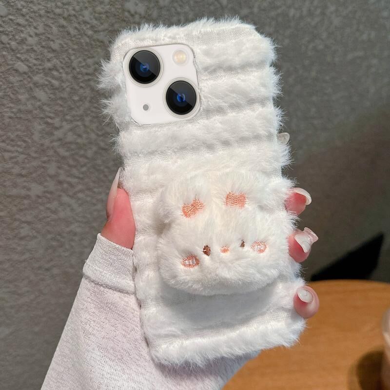 Θήκη τηλεφώνου για iPhone 14, βελούδινη κούκλα, υβριδική PU/PC (Λευκό)