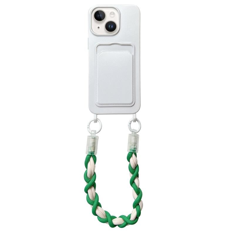 Θήκη τηλεφώνου για iPhone 14 με υποδοχή κάρτας ντοπαμίνης και κορδόνι (Λευκό)