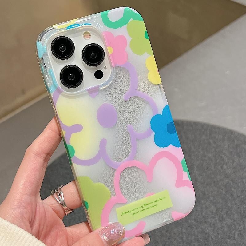 For iPhone 14 Double Sided IMD Full Coverage TPU Phone Case(Hook Line Purple Pink Flowers)