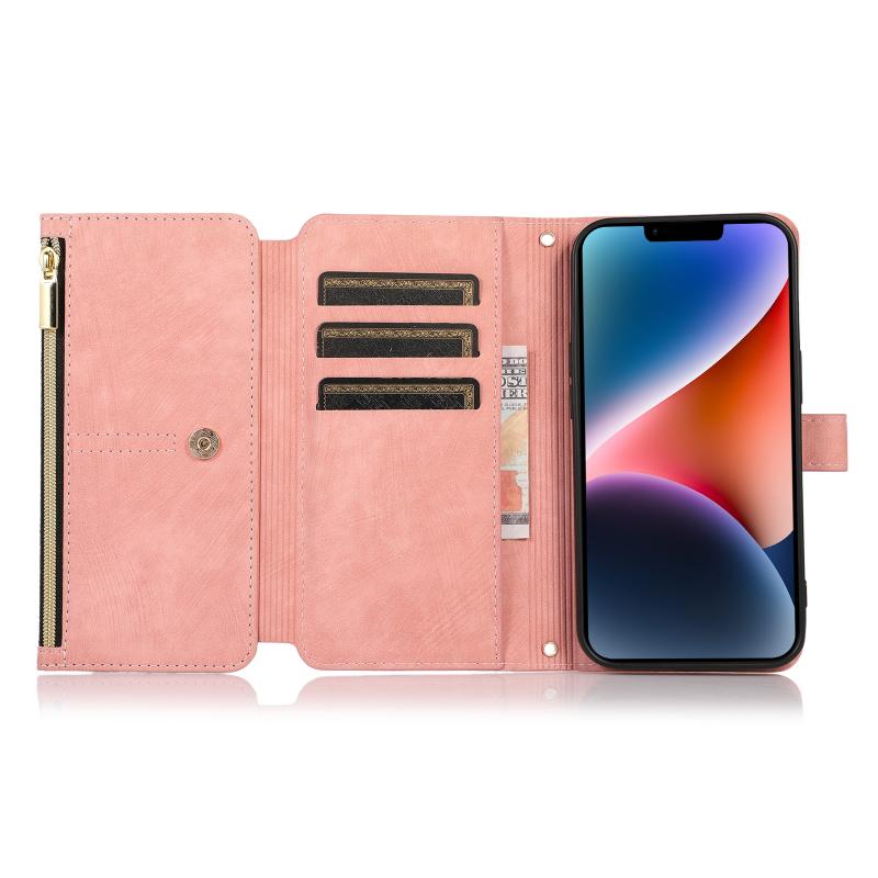 For iPhone 14 Dream 9-Card Wallet Zipper Bag Leather Phone Case(Pink)