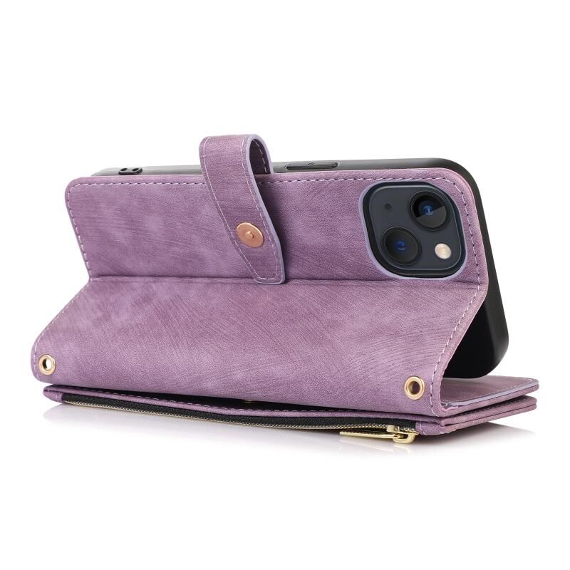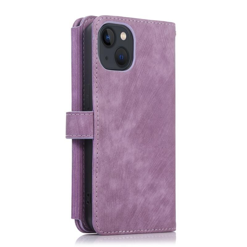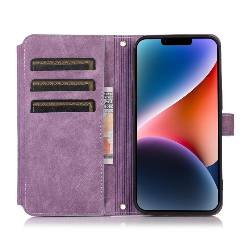 Θήκη κινητού τηλεφώνου από δέρμα για iPhone 14 Dream, με τσέπη πορτοφολιού για 9 κάρτες και φερμουάρ (Κόκκινο)