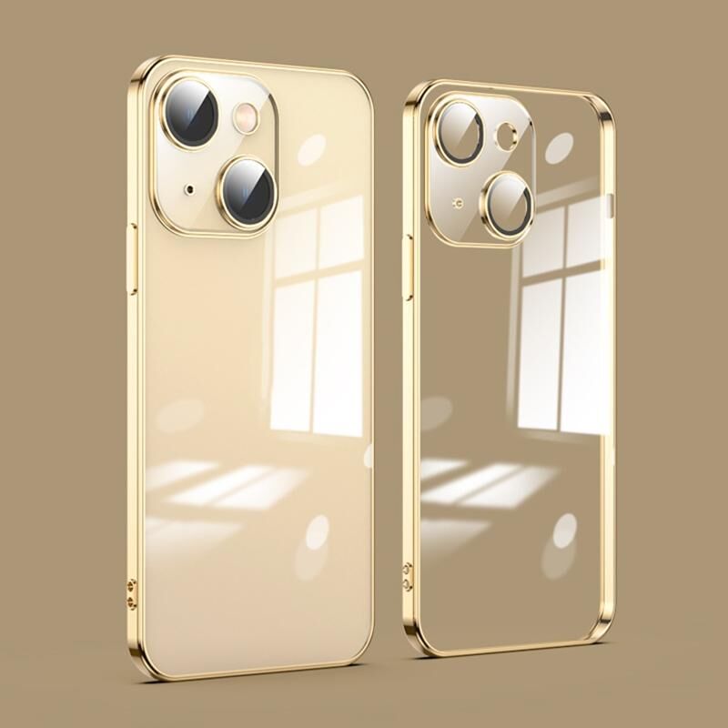 Θήκη τηλεφώνου με γυάλινη προστασία φακού για iPhone 14, ανθεκτική στη σκόνη, με ηλεκτρολυτική επίστρωση (Ασημί)
