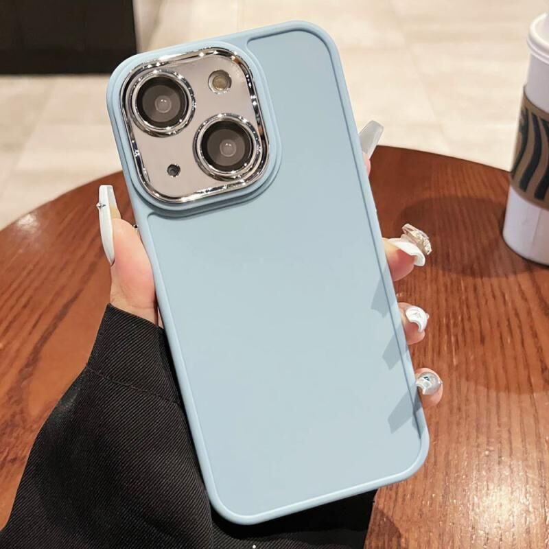 Θήκη τηλεφώνου για iPhone 14 με ηλεκτρολυτικό πλαίσιο φακού και προστατευτική μεμβράνη φακού (Λευκό)