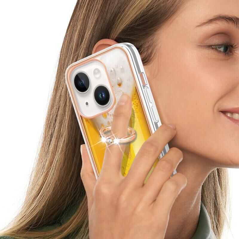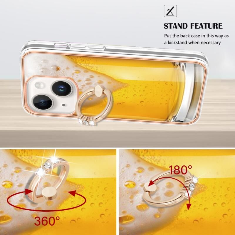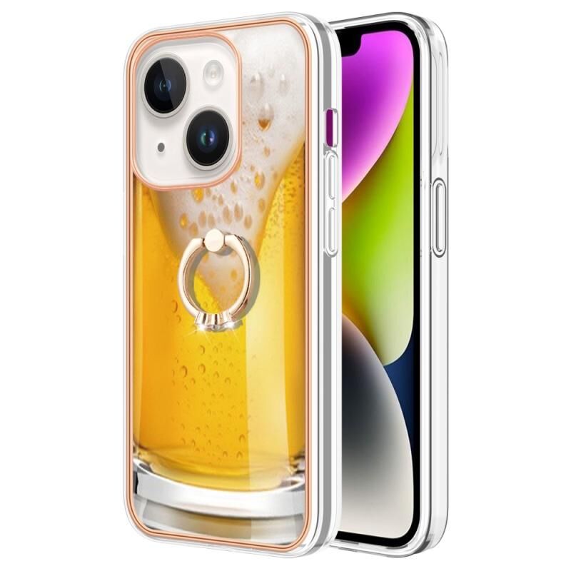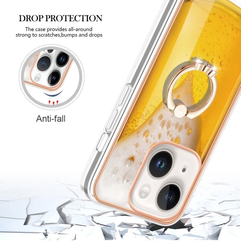 For iPhone 14 Electroplating Dual-side IMD Phone Case with Ring Holder(Draft Beer)