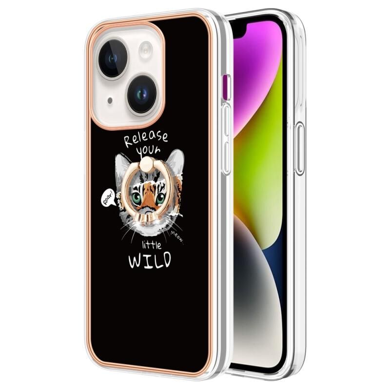 For iPhone 14 Electroplating Dual-side IMD Phone Case with Ring Holder(Natural Growth)