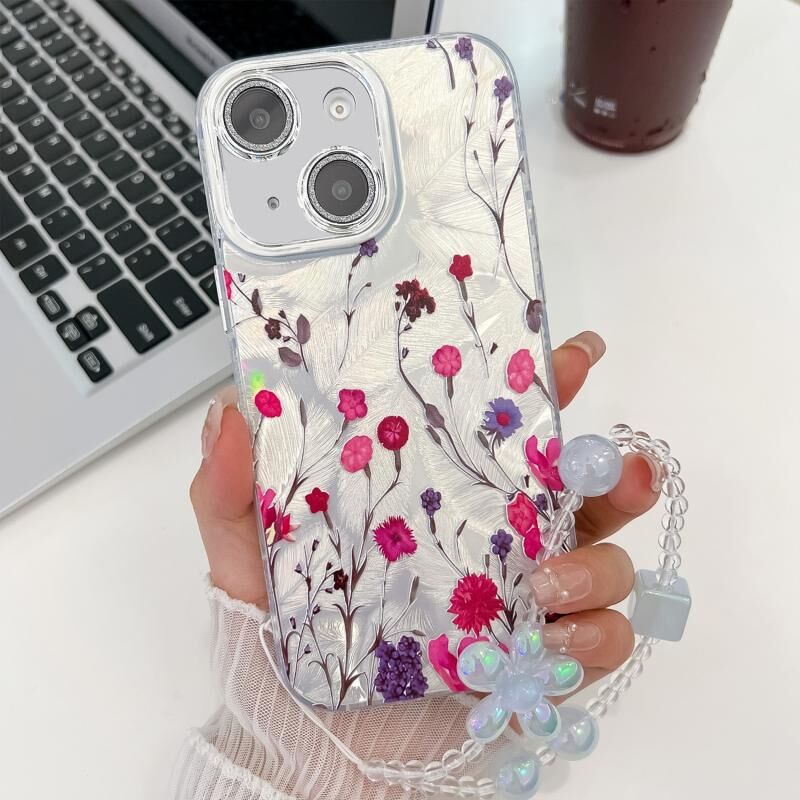 For iPhone 14 Electroplating Flowers Plants Texture Wristband TPU Phone Case(Carnation FL7)