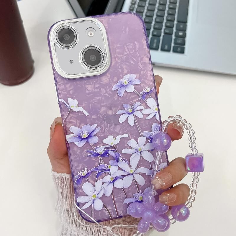 For iPhone 14 Electroplating Flowers Plants Texture Wristband TPU Phone Case(Lilac Flowers FL16)