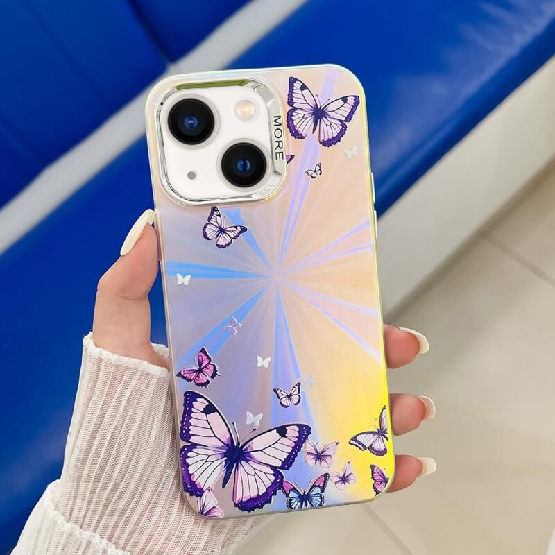 Θήκη τηλεφώνου με ηλεκτρολυτική επίστρωση και σχέδιο πεταλούδας laser για iPhone 14 (Ροζ Πεταλούδες AB2)