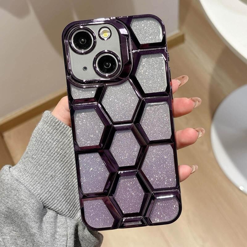 For iPhone 14 Electroplating Laser Engraving 3D Honeycomb Glitter TPU Phone Case(Purple)