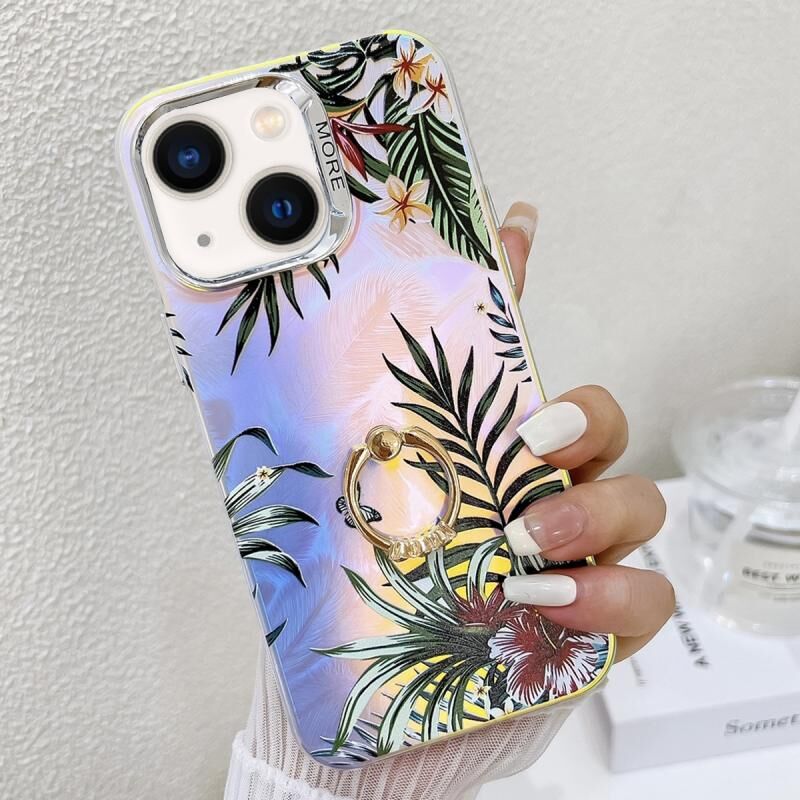Θήκη τηλεφώνου TPU με Ηλεκτρολυτική Λουλουδάτη Δακτύλιο για iPhone 14 (Φύλλα AH12)
