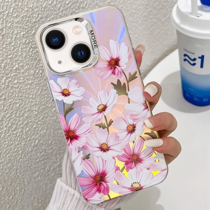 For iPhone 14 Electroplating Laser Flower Texture TPU Phone Case(Cosmos Flower AH7)