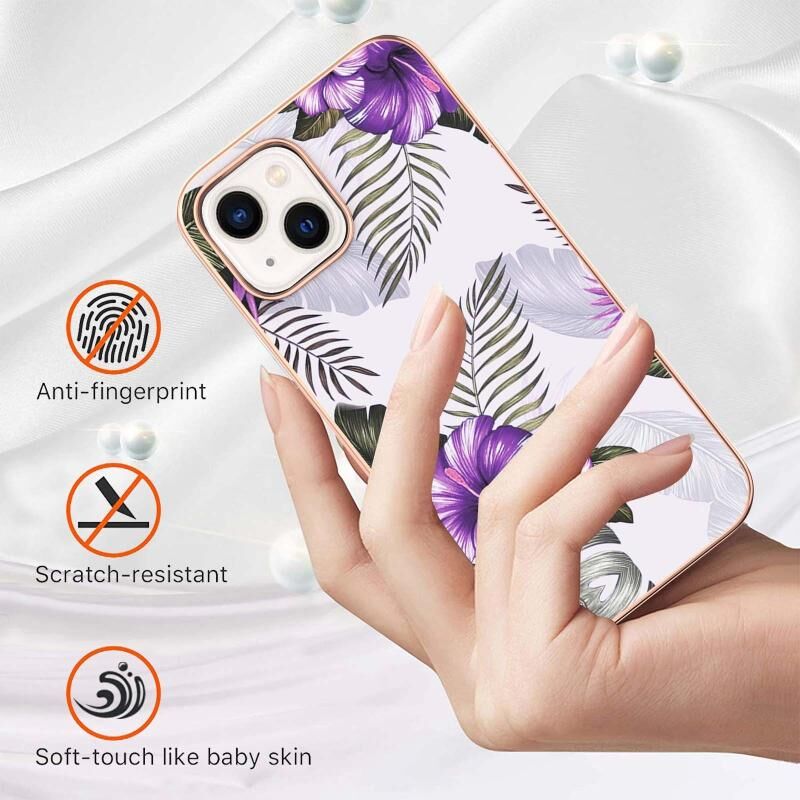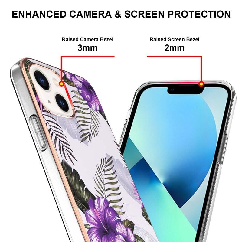 Θήκη για iPhone 14 με σχέδιο επιμετάλλωσης IMD TPU αντικραδασμική (Ροζ Λέπια)
