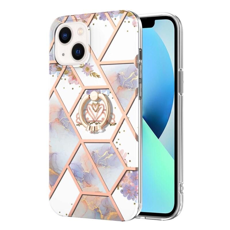 Θήκη για iPhone 14 με επιμετάλλωση, συνδυασμό μαρμάρου και λουλουδιών, από TPU ανθεκτική στις κρούσεις με δαχτυλίδι στήριξης από ρητίνη (Imperial Crown).