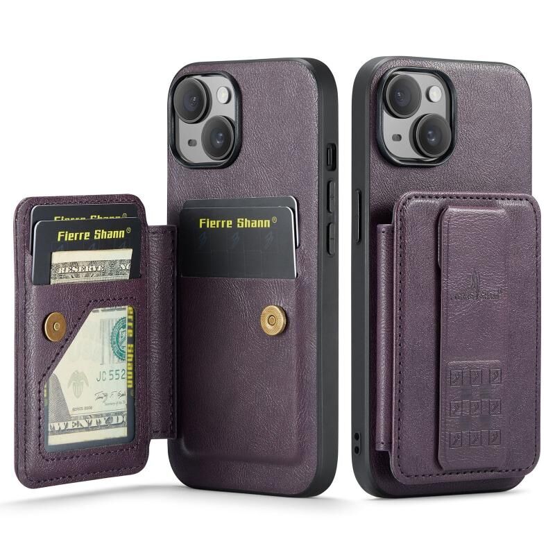 For iPhone 14 Fierre Shann Oil Wax Cow Leather Card Holder Back Phone Case(Purple) (FIERRE SHANN)
