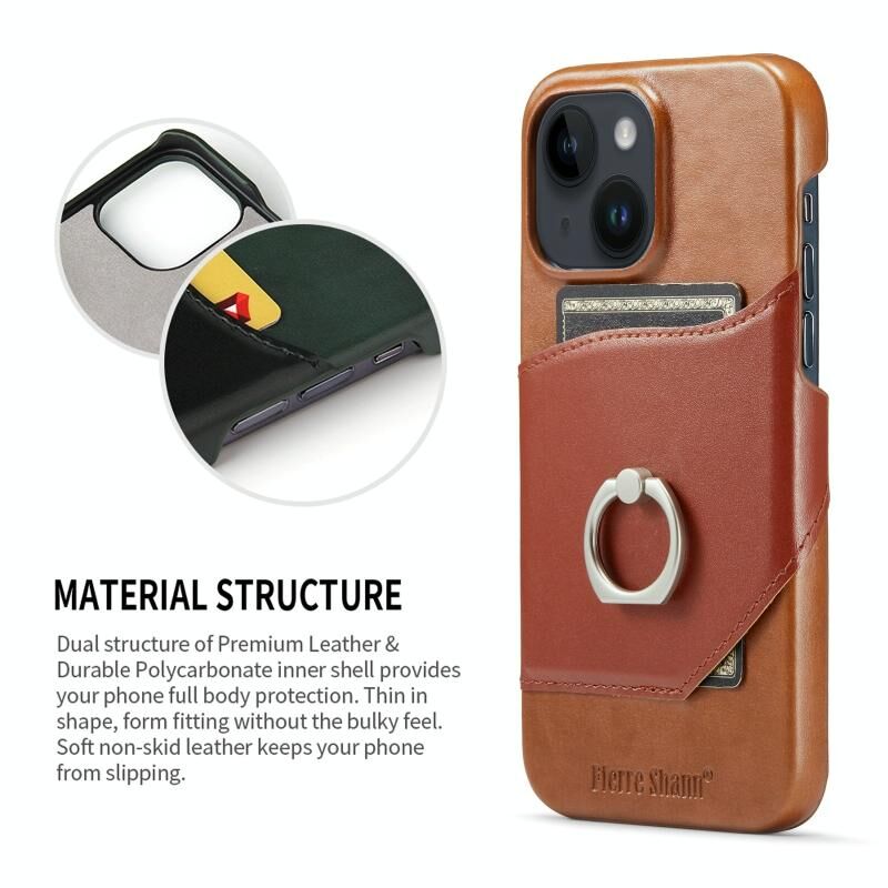 For iPhone 14 Fierre Shann Oil Wax Texture Genuine Leather Back Case (Brown) (FIERRE SHANN)