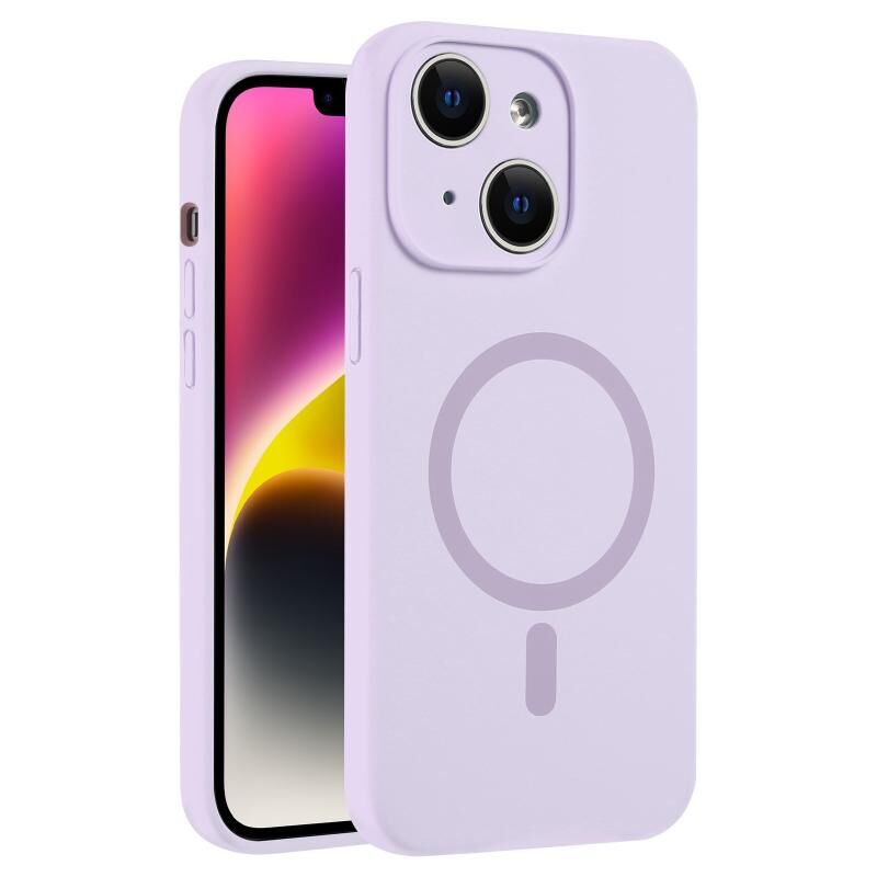 For iPhone 14 Fine Hole Pure Color Liquid Silicone MagSafe Phone Case(Lilac)
