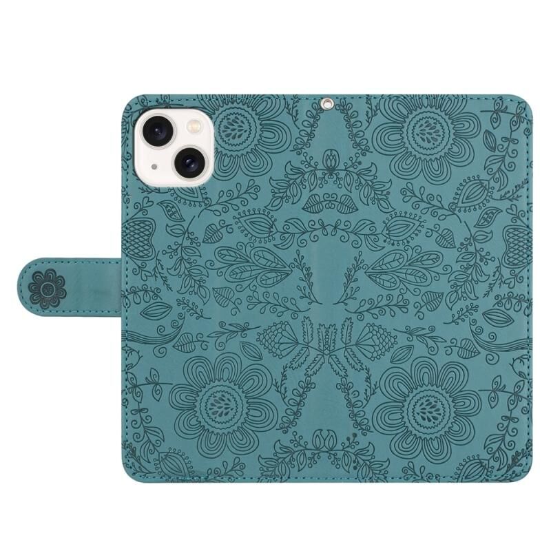 Θήκη τηλεφώνου δερμάτινη με ανάγλυφο floral σχέδιο για iPhone 14 (Σκούρο Πράσινο)