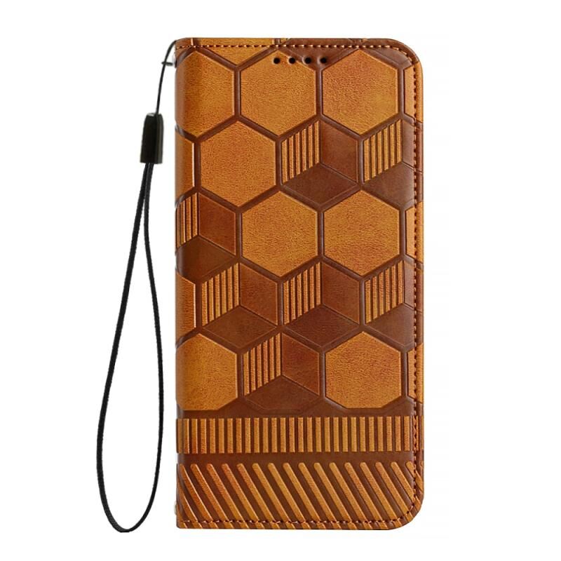 Θήκη τηλεφώνου τύπου flip από μαγνητικό δέρμα με υφή ποδοσφαίρου για iPhone 14 (Χακί)