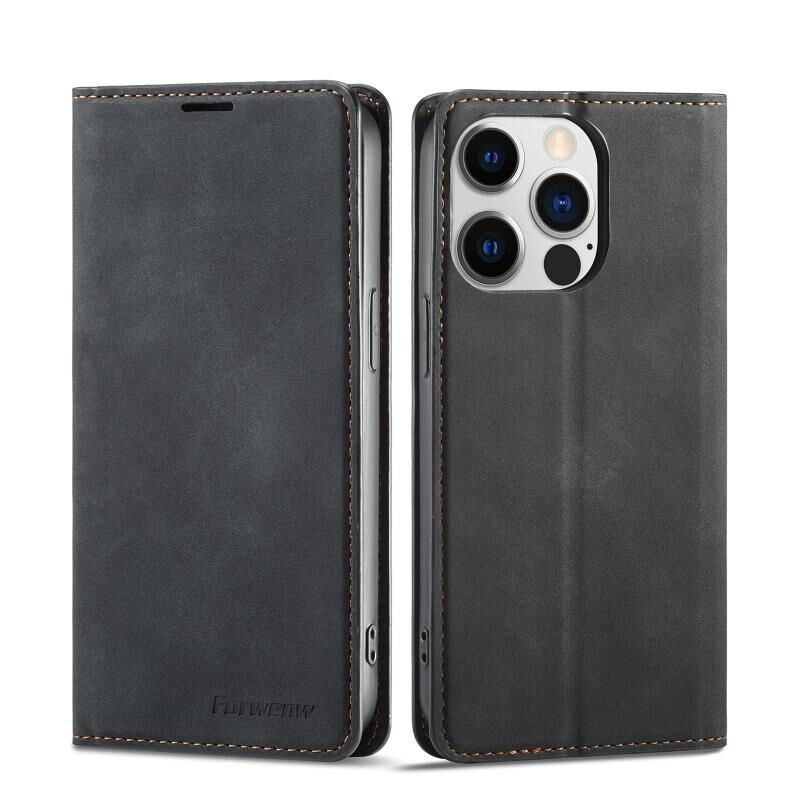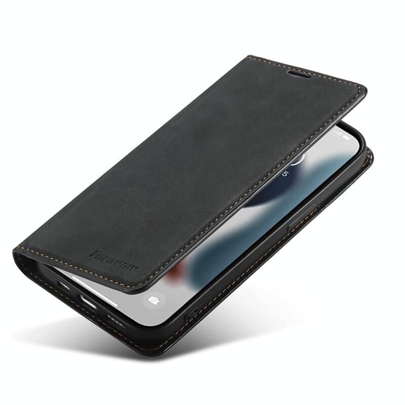 Θήκη τηλεφώνου δερμάτινη με ισχυρό μαγνητισμό και λεπτή άκρη λαδιού, σειρά Dream Forwenw για iPhone 14 (Μαύρο) (Forwenw)