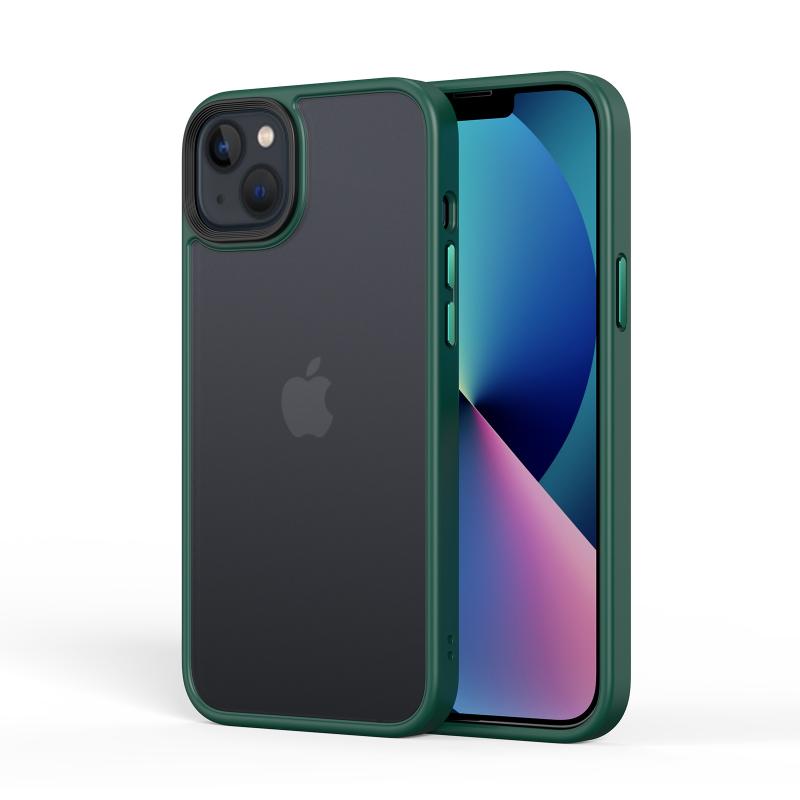 For iPhone 14 Frosted Back Shockproof Phone Case (Deep Green)