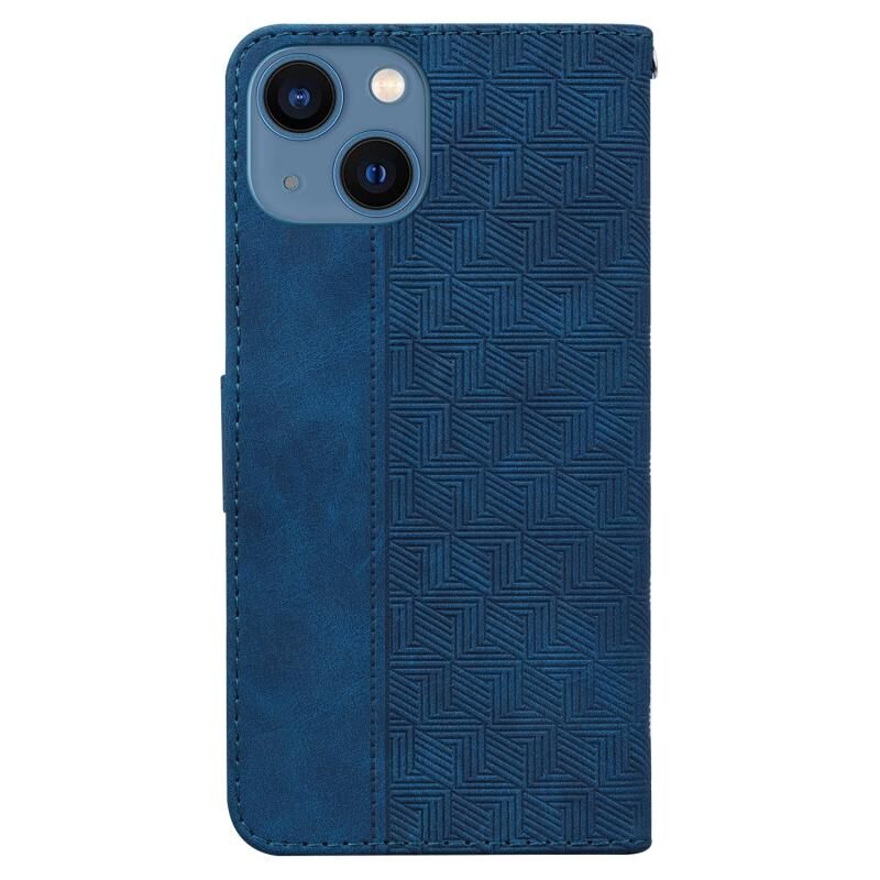 Θήκη τηλεφώνου δερμάτινη με γεωμετρική ανάγλυφη διακόσμηση για iPhone 14 (Μπλε)