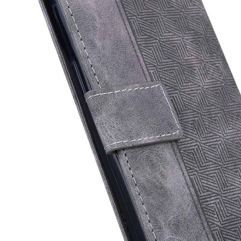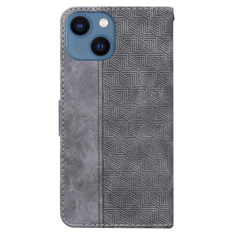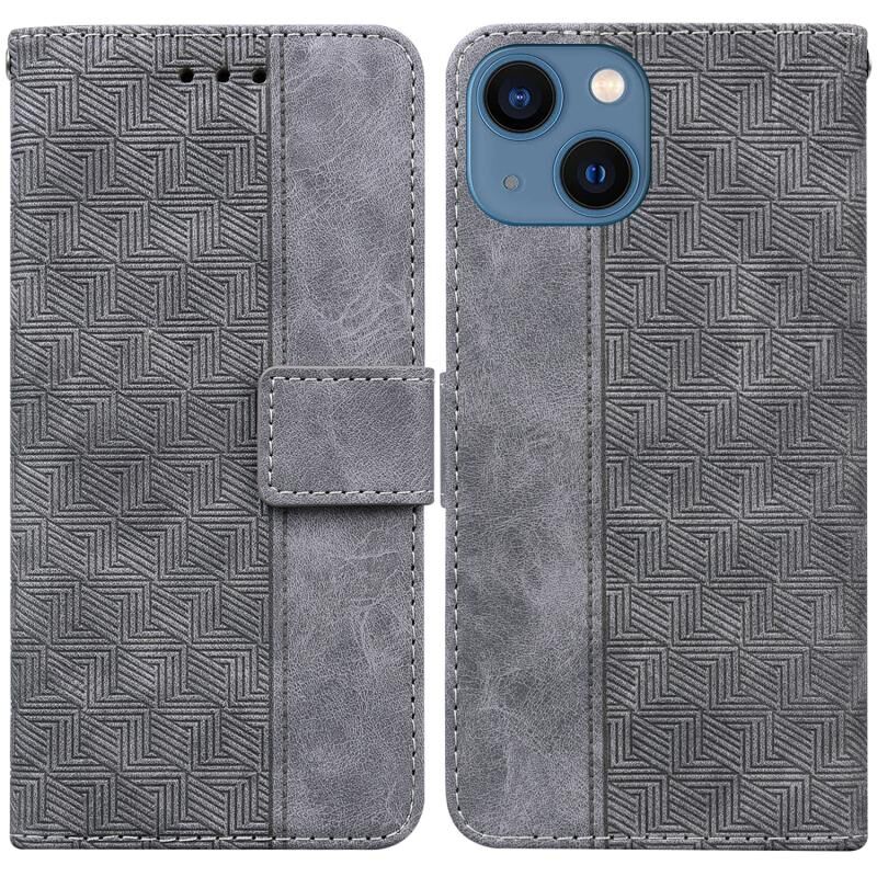 Θήκη τηλεφώνου δερμάτινη με γεωμετρική ανάγλυφη διακόσμηση για iPhone 14 (Μπλε)
