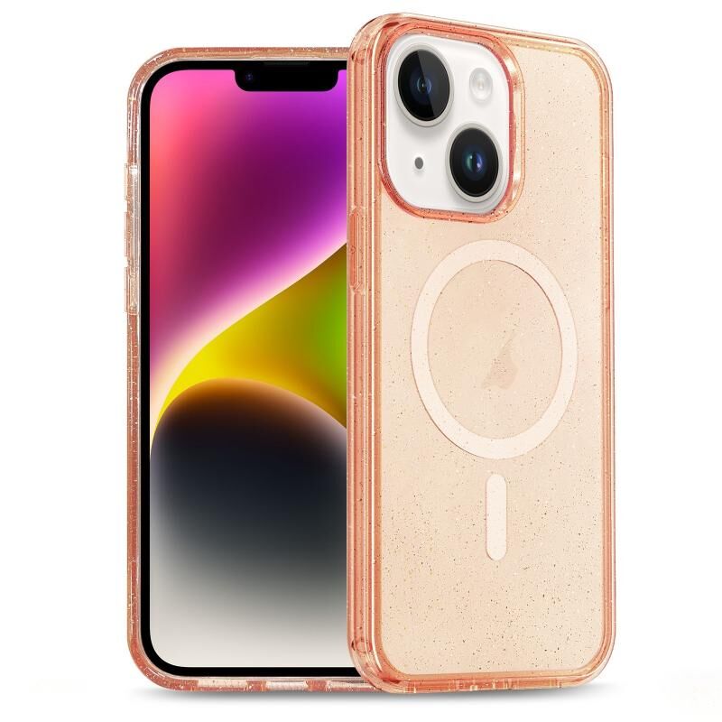 For iPhone 14 Glitter Powder TPU Hybrid PC MagSafe Phone Case(Orange)