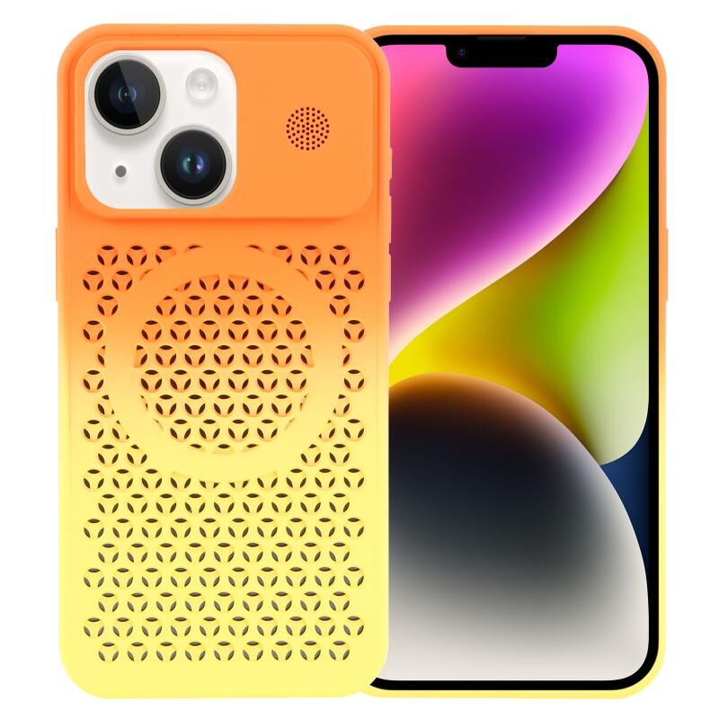 Θήκη τηλεφώνου για iPhone 14 με διαβαθμιστικά χρώματα, κυψελωτό σχέδιο, αρωματοθεραπεία και MagSafe (Πορτοκαλί-Κίτρινο)