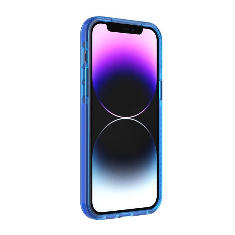 For iPhone 14 Grid Pattern Transparent TPU Phone Case(Blue)