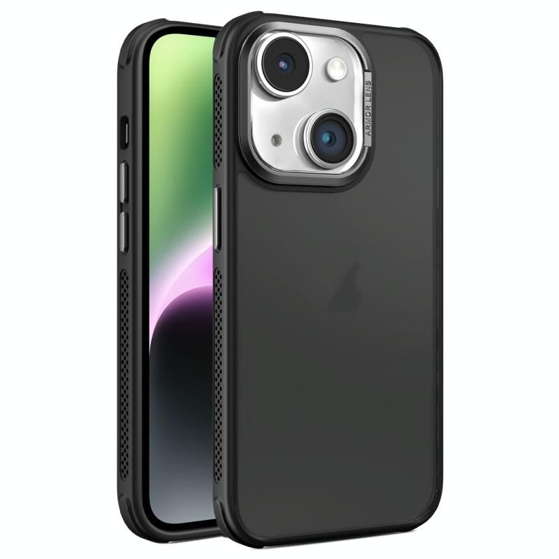 Θήκη τηλεφώνου για iPhone 14 με μεταλλική αίσθηση, παγωμένο φινίρισμα, πλευρική ψύξη υλικού και πλαίσιο φακού (Μαύρο)