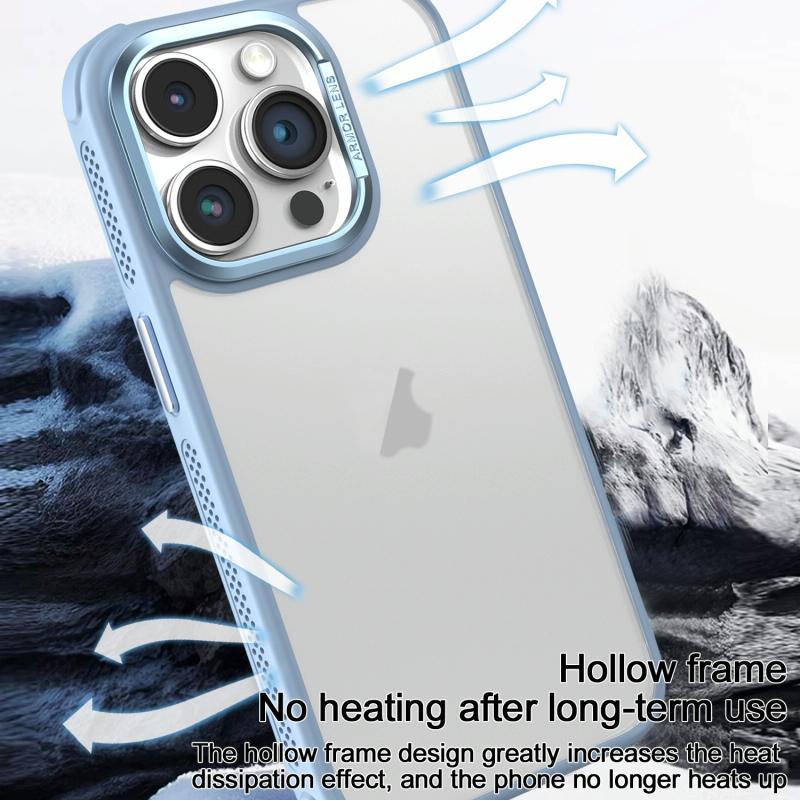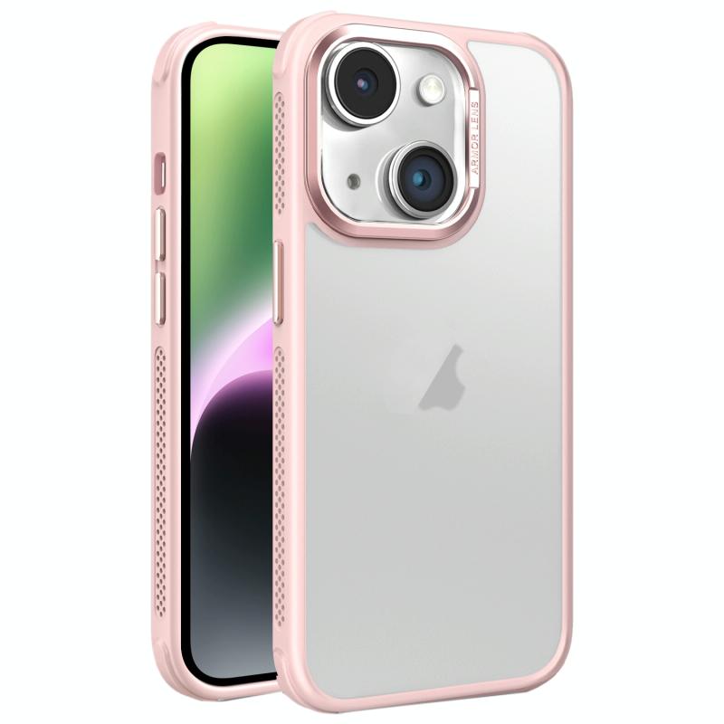 For iPhone 14 Hardware Side Cooling Skin Feel Frosted Metal Lens Frame Phone Case(Pink)