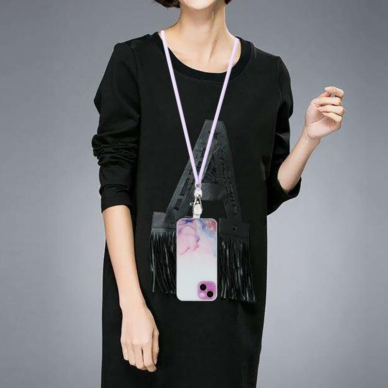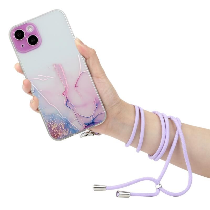 Θήκη για iPhone 14, κοίταγμα μαρμάρου, TPU αντικραδασμική προστατευτική με κορδόνι λαιμού (Γκρι)